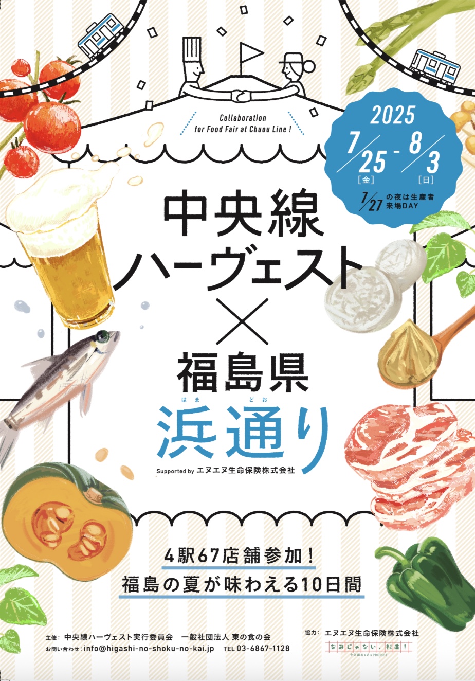 今回は福島県浜通り地域とのコラボレーション企画として、7月25日(金)〜8月3日(日)の10日間、中央線沿線の4駅(中野・高円寺・阿佐ヶ谷・荻窪)にある計67店舗の飲食店で、福島の夏の味覚を堪能できる特別メニューが提供されました。