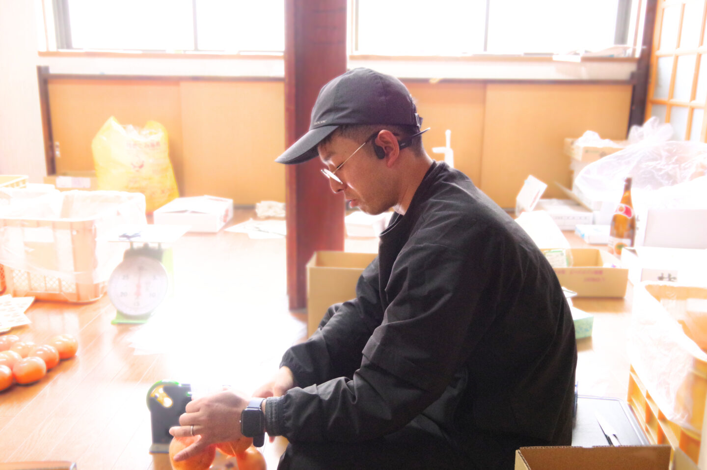 ひとつひとつ手にとって傷や汚れ、熟し具合をチェックし、布できれいに拭いて、袋に梱包する。当たり前かもしれないが、畑で採れたものが、こうして手作業で丁寧に整えられて、お客様に届く状態になるのだと、背筋が伸びる思いがした。