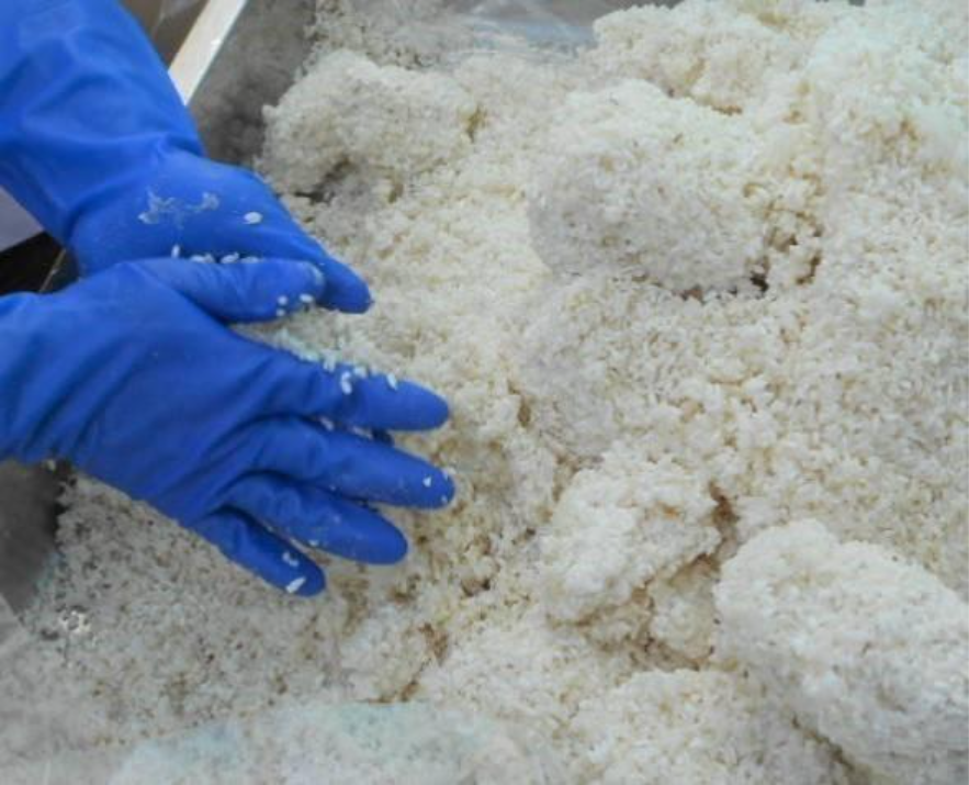 御稲プライマルの三五八を一口食べれば、「甘みの質」の違いに気づく。その秘密は、原料となる米へのこだわりにあった。通常、加工品としての三五八には流通の過程で割れてしまった「砕米(さいまい)」が使われることが多い。しかし、御稲プライマルは自分たちが丹精込めて育てた「食用米」を、そのまま贅沢に投入している。